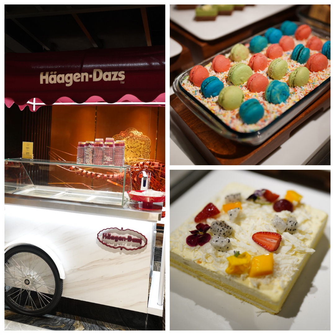 这里的蛋糕、小面包、冰淇淋等各种甜品...
